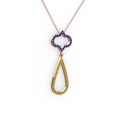 Lab safir ve peridot 925 ayar rose altın kaplama gümüş kolye (40 cm gümüş rolo zincir)