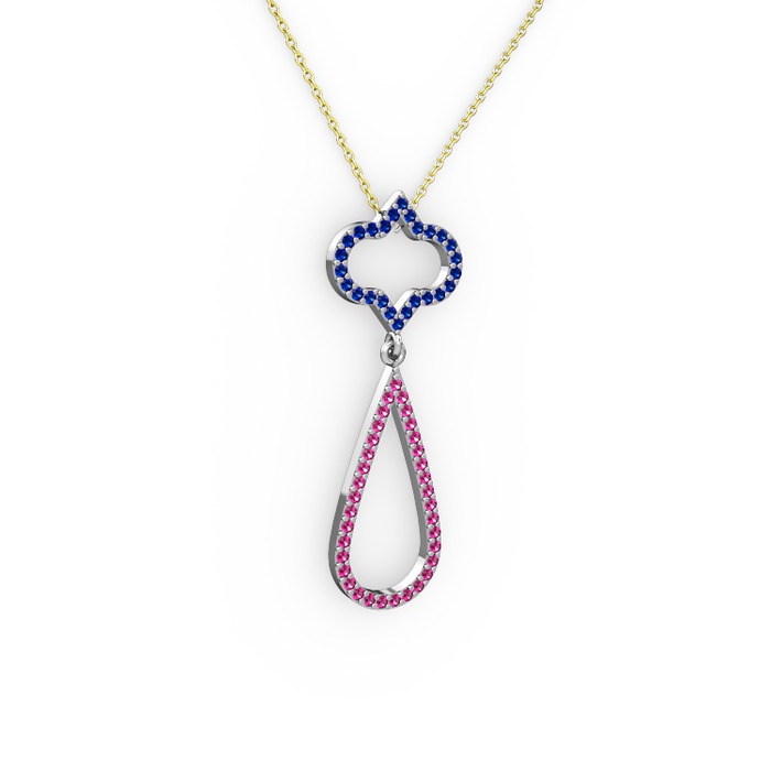 Lab safir ve rodolit garnet 14 ayar beyaz altın kolye (40 cm altın rolo zincir)
