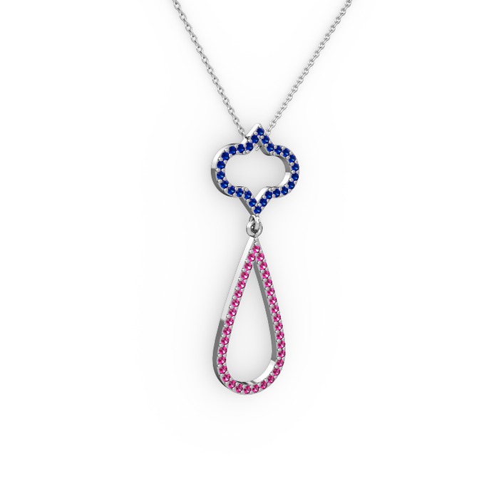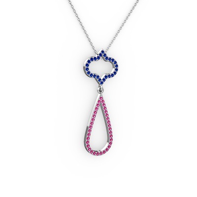 Lab safir ve rodolit garnet 8 ayar beyaz altın kolye (40 cm gümüş rolo zincir)