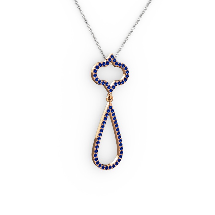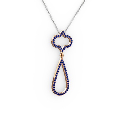 Lab safir 925 ayar rose altın kaplama gümüş kolye (40 cm beyaz altın rolo zincir)