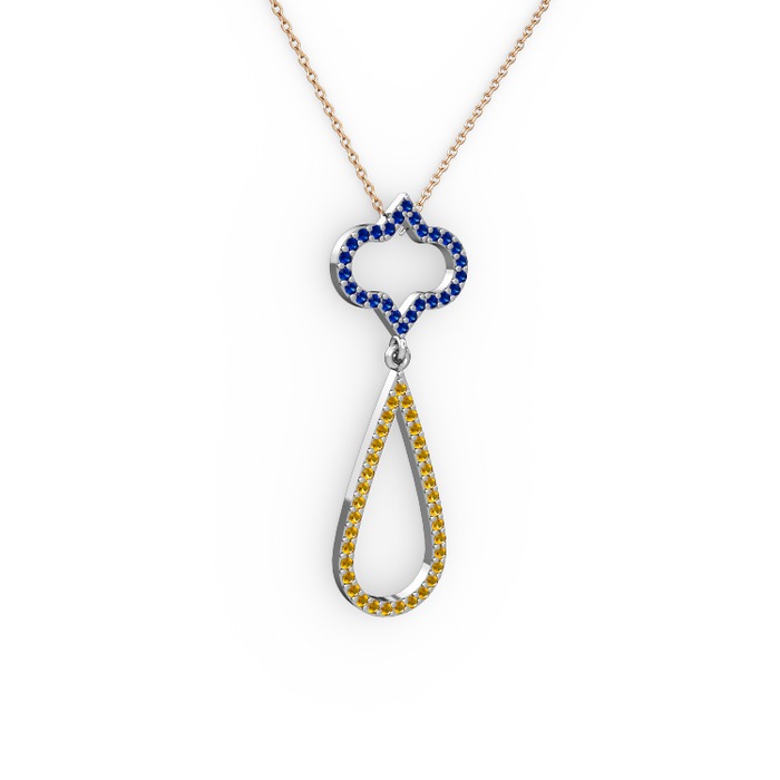 Lab safir ve sitrin 14 ayar beyaz altın kolye (40 cm rose altın rolo zincir)