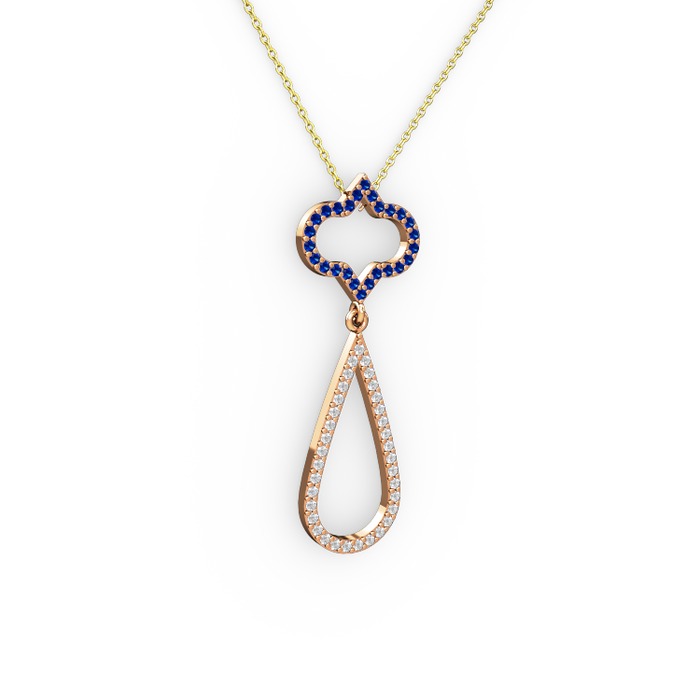 Lab safir ve swarovski 8 ayar rose altın kolye (40 cm altın rolo zincir)