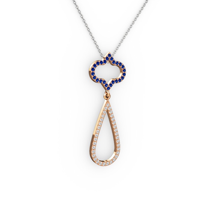 Lab safir ve swarovski 8 ayar rose altın kolye (40 cm gümüş rolo zincir)