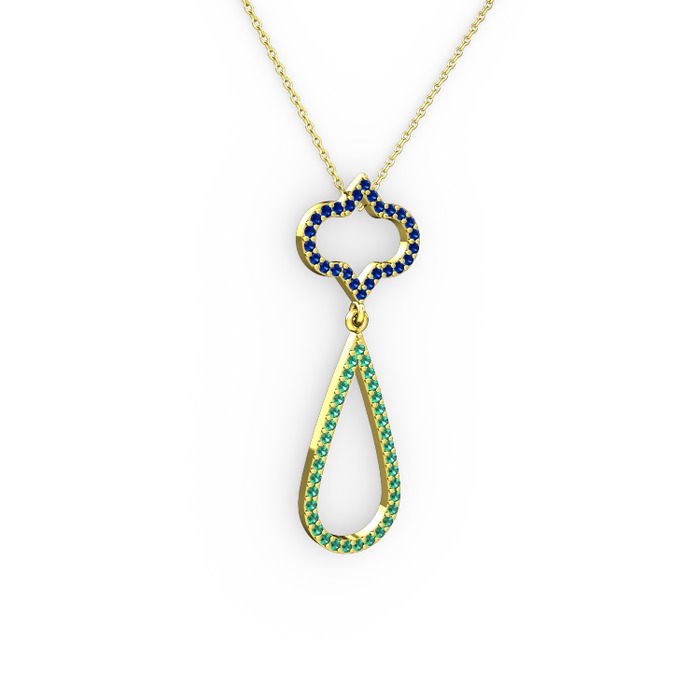 Lab safir ve yeşil kuvars 8 ayar altın kolye (40 cm altın rolo zincir)