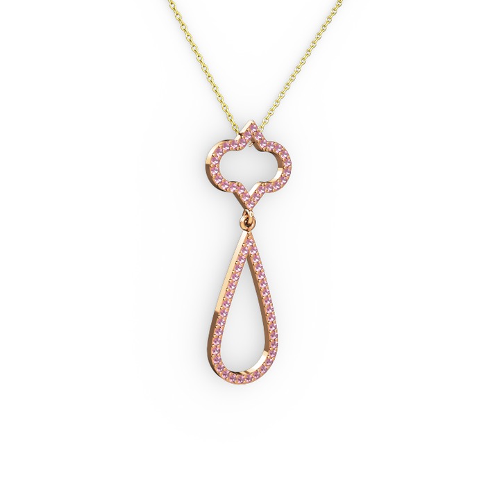 Pembe kuvars 14 ayar rose altın kolye (40 cm altın rolo zincir)