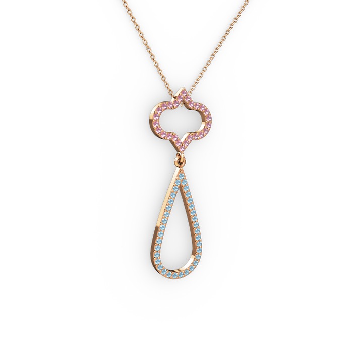 Pembe kuvars ve akuamarin 925 ayar rose altın kaplama gümüş kolye (40 cm gümüş rolo zincir)