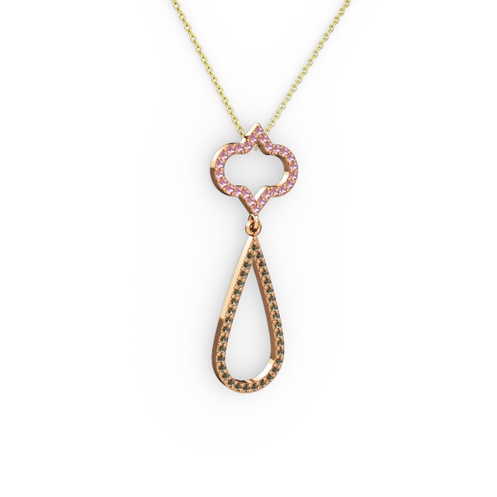 Pembe kuvars ve dumanlı kuvars 18 ayar rose altın kolye (40 cm altın rolo zincir)