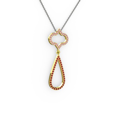 Pembe kuvars ve garnet 14 ayar altın kolye (40 cm gümüş rolo zincir)