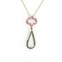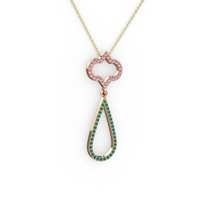 Pembe kuvars ve kök zümrüt 18 ayar rose altın kolye (40 cm gümüş rolo zincir)