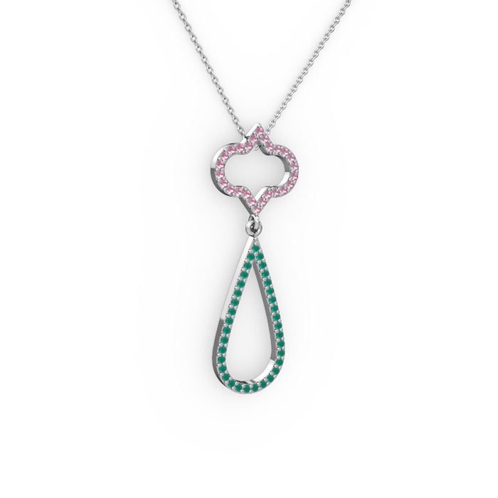 Pembe kuvars ve kök zümrüt 925 ayar gümüş kolye (40 cm beyaz altın rolo zincir)