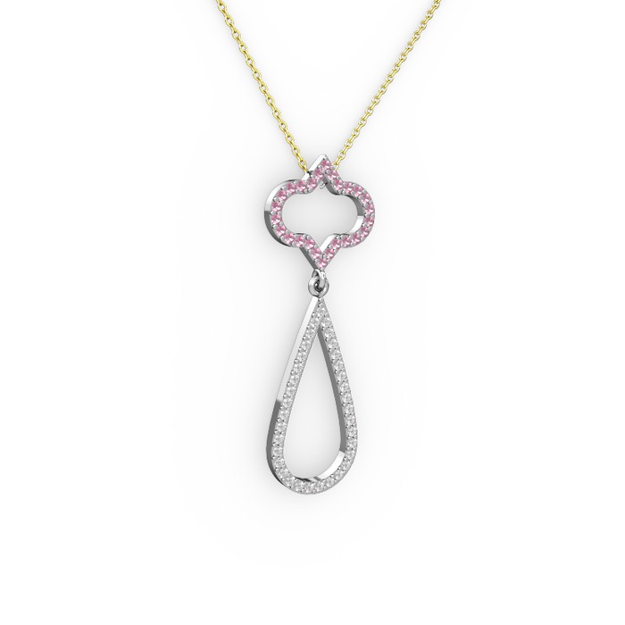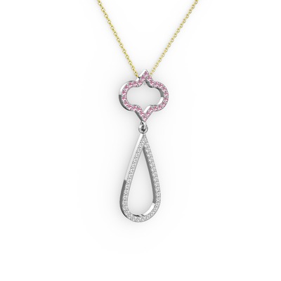 Pembe kuvars ve pırlanta 14 ayar beyaz altın kolye (0.324 karat, 40 cm altın rolo zincir)
