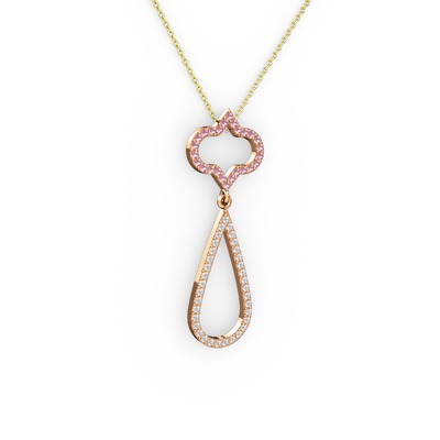 Pembe kuvars ve pırlanta 18 ayar rose altın kolye (0.324 karat, 40 cm altın rolo zincir)