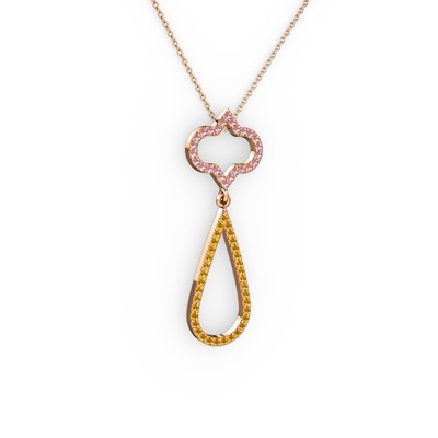Pembe kuvars ve sitrin 8 ayar rose altın kolye (40 cm gümüş rolo zincir)
