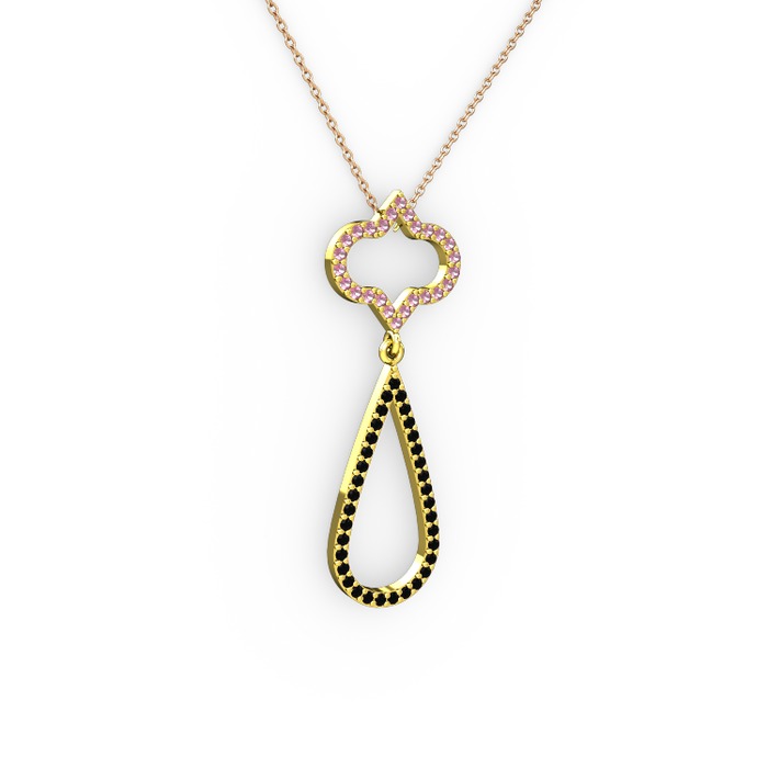 Pembe kuvars ve siyah zirkon 8 ayar altın kolye (40 cm rose altın rolo zincir)