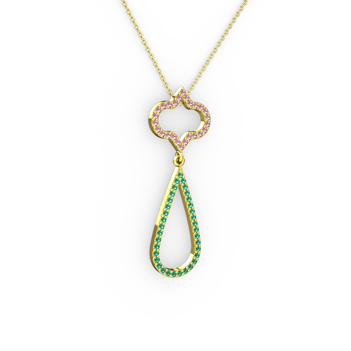 Pembe kuvars ve yeşil kuvars 8 ayar altın kolye (40 cm altın rolo zincir)