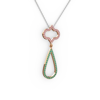 Pembe kuvars ve yeşil kuvars 8 ayar rose altın kolye (40 cm gümüş rolo zincir)
