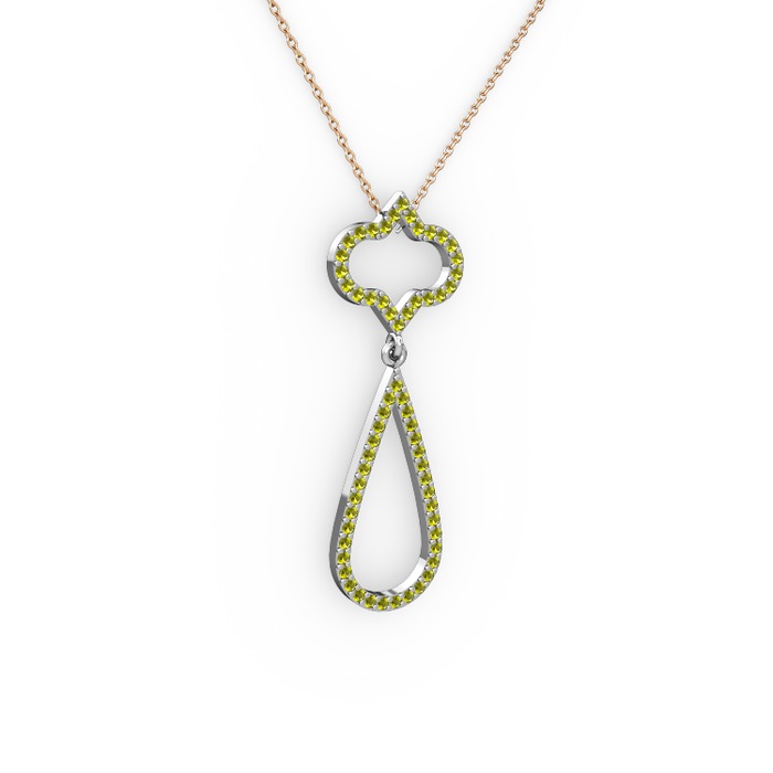 Peridot 18 ayar beyaz altın kolye (40 cm rose altın rolo zincir)
