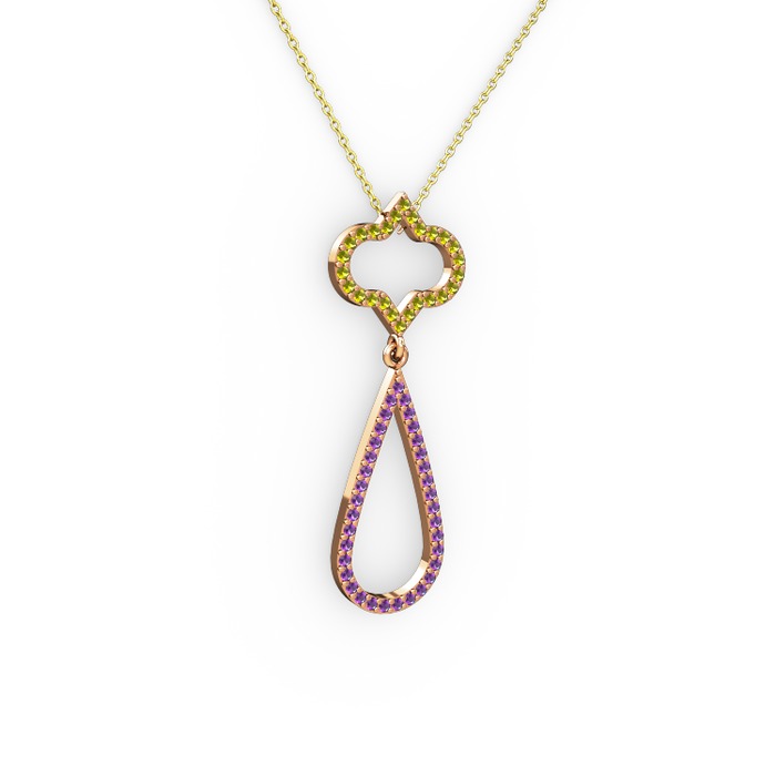 Peridot ve ametist 14 ayar rose altın kolye (40 cm altın rolo zincir)