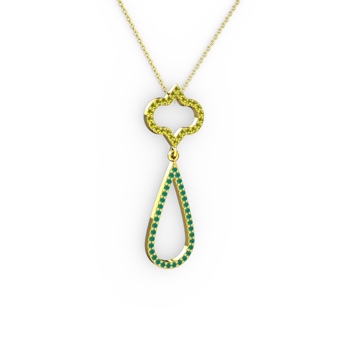 Peridot ve kök zümrüt 14 ayar altın kolye (40 cm altın rolo zincir)