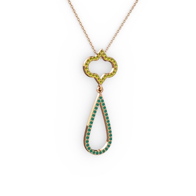 Peridot ve kök zümrüt 14 ayar rose altın kolye (40 cm gümüş rolo zincir)