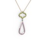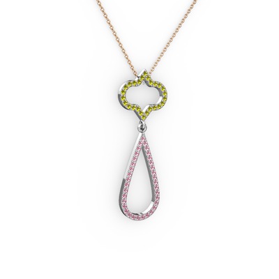 Peridot ve pembe kuvars 14 ayar beyaz altın kolye (40 cm gümüş rolo zincir)