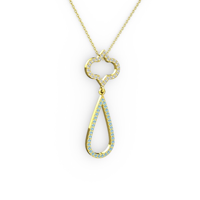 Pırlanta ve akuamarin 18 ayar altın kolye (0.288 karat, 40 cm altın rolo zincir)