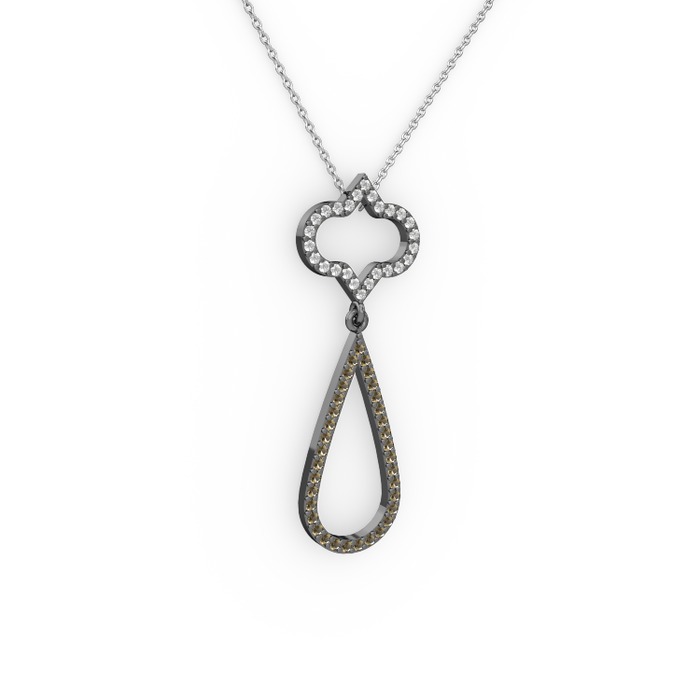Pırlanta ve dumanlı kuvars 925 ayar siyah rodyum kaplama gümüş kolye (0.288 karat, 40 cm gümüş rolo zincir)