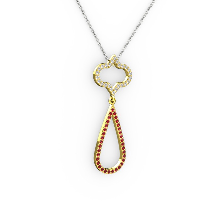 Pırlanta ve garnet 14 ayar altın kolye (0.288 karat, 40 cm beyaz altın rolo zincir)