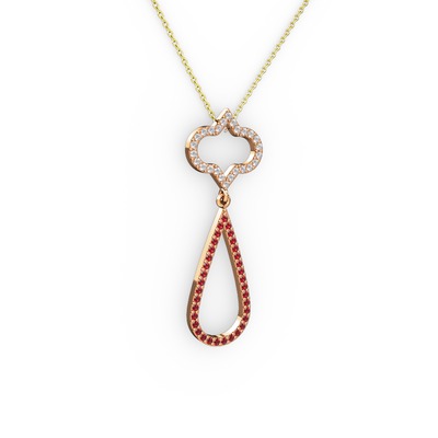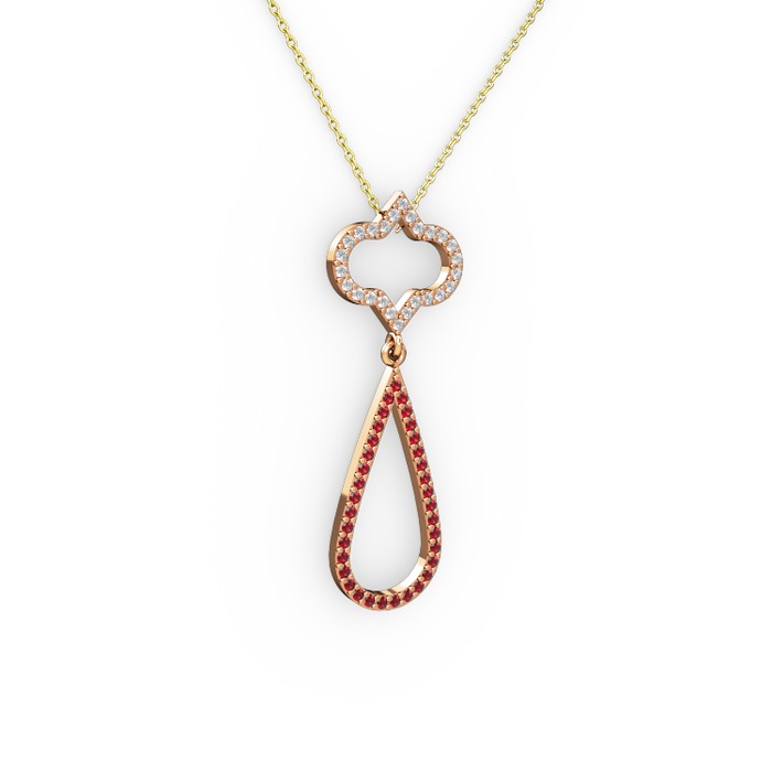 Pırlanta ve garnet 18 ayar rose altın kolye (0.288 karat, 40 cm altın rolo zincir)