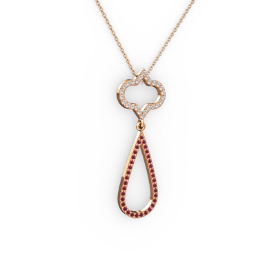 Pırlanta ve kök yakut 14 ayar rose altın kolye (0.288 karat, 40 cm rose altın rolo zincir)