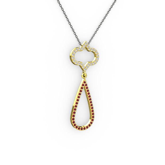 Pırlanta ve kök yakut 8 ayar altın kolye (0.288 karat, 40 cm gümüş rolo zincir)