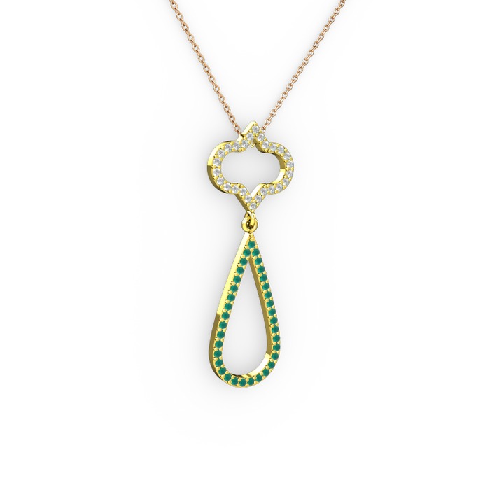 Pırlanta ve kök zümrüt 18 ayar altın kolye (0.288 karat, 40 cm rose altın rolo zincir)