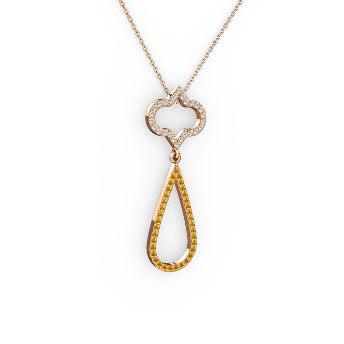 Pırlanta ve sitrin 925 ayar rose altın kaplama gümüş kolye (0.288 karat, 40 cm gümüş rolo zincir)
