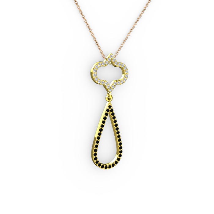 Pırlanta ve siyah zirkon 18 ayar altın kolye (0.288 karat, 40 cm rose altın rolo zincir)