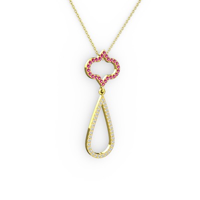 Rodolit garnet ve beyaz zirkon 18 ayar altın kolye (40 cm altın rolo zincir)