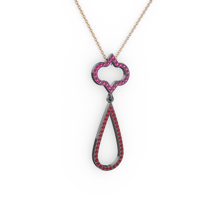 Rodolit garnet ve garnet 925 ayar siyah rodyum kaplama gümüş kolye (40 cm gümüş rolo zincir)