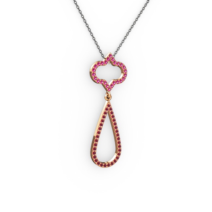 Rodolit garnet ve kök yakut 18 ayar rose altın kolye (40 cm gümüş rolo zincir)