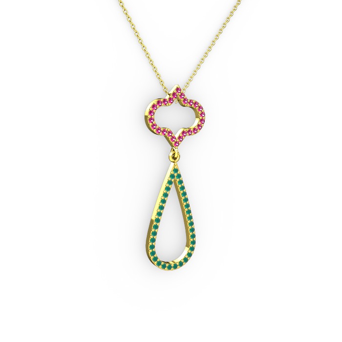 Rodolit garnet ve kök zümrüt 8 ayar altın kolye (40 cm altın rolo zincir)