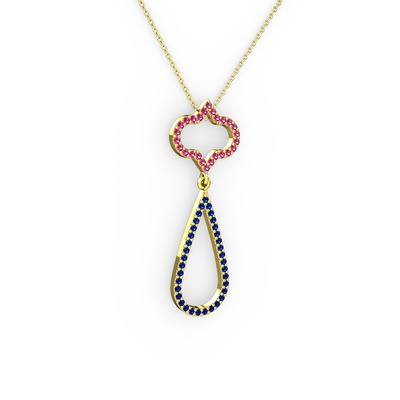 Rodolit garnet ve lab safir 18 ayar altın kolye (40 cm altın rolo zincir)