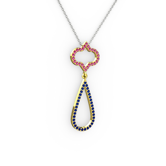 Rodolit garnet ve lab safir 18 ayar altın kolye (40 cm beyaz altın rolo zincir)