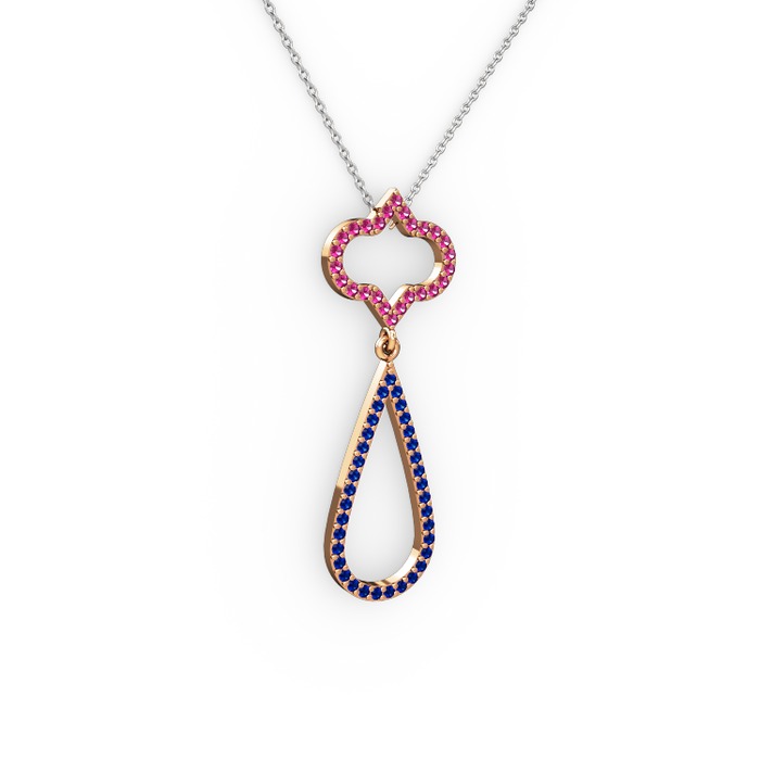 Rodolit garnet ve lab safir 8 ayar rose altın kolye (40 cm beyaz altın rolo zincir)
