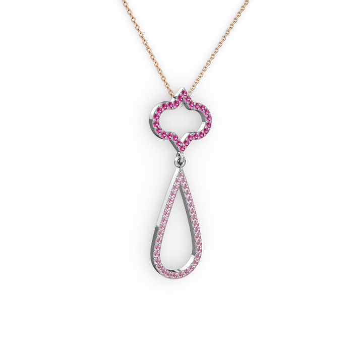 Rodolit garnet ve pembe kuvars 14 ayar beyaz altın kolye (40 cm gümüş rolo zincir)