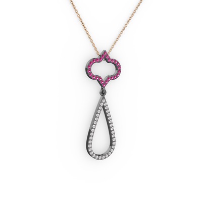 Rodolit garnet ve pırlanta 925 ayar siyah rodyum kaplama gümüş kolye (0.324 karat, 40 cm rose altın rolo zincir)