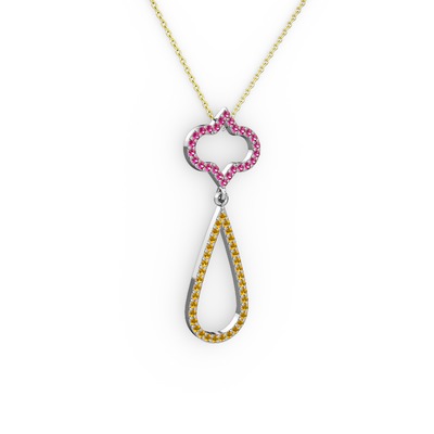 Rodolit garnet ve sitrin 8 ayar beyaz altın kolye (40 cm altın rolo zincir)