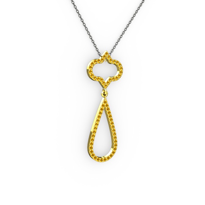 Sitrin 14 ayar altın kolye (40 cm gümüş rolo zincir)