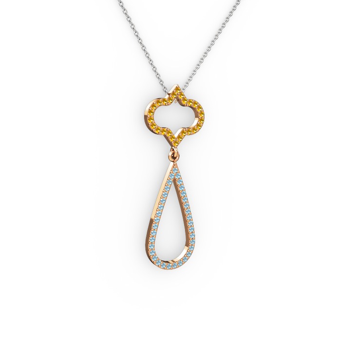 Sitrin ve akuamarin 14 ayar rose altın kolye (40 cm beyaz altın rolo zincir)