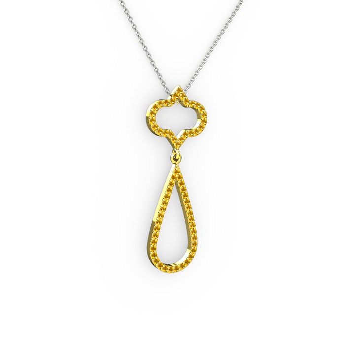 Sitrin 925 ayar altın kaplama gümüş kolye (40 cm beyaz altın rolo zincir)