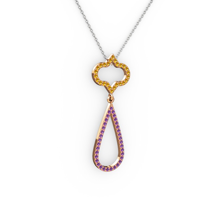 Sitrin ve ametist 14 ayar rose altın kolye (40 cm beyaz altın rolo zincir)