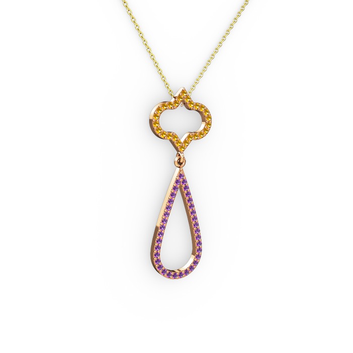 Sitrin ve ametist 925 ayar rose altın kaplama gümüş kolye (40 cm altın rolo zincir)