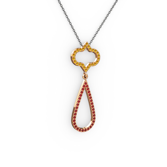Sitrin ve garnet 14 ayar rose altın kolye (40 cm gümüş rolo zincir)